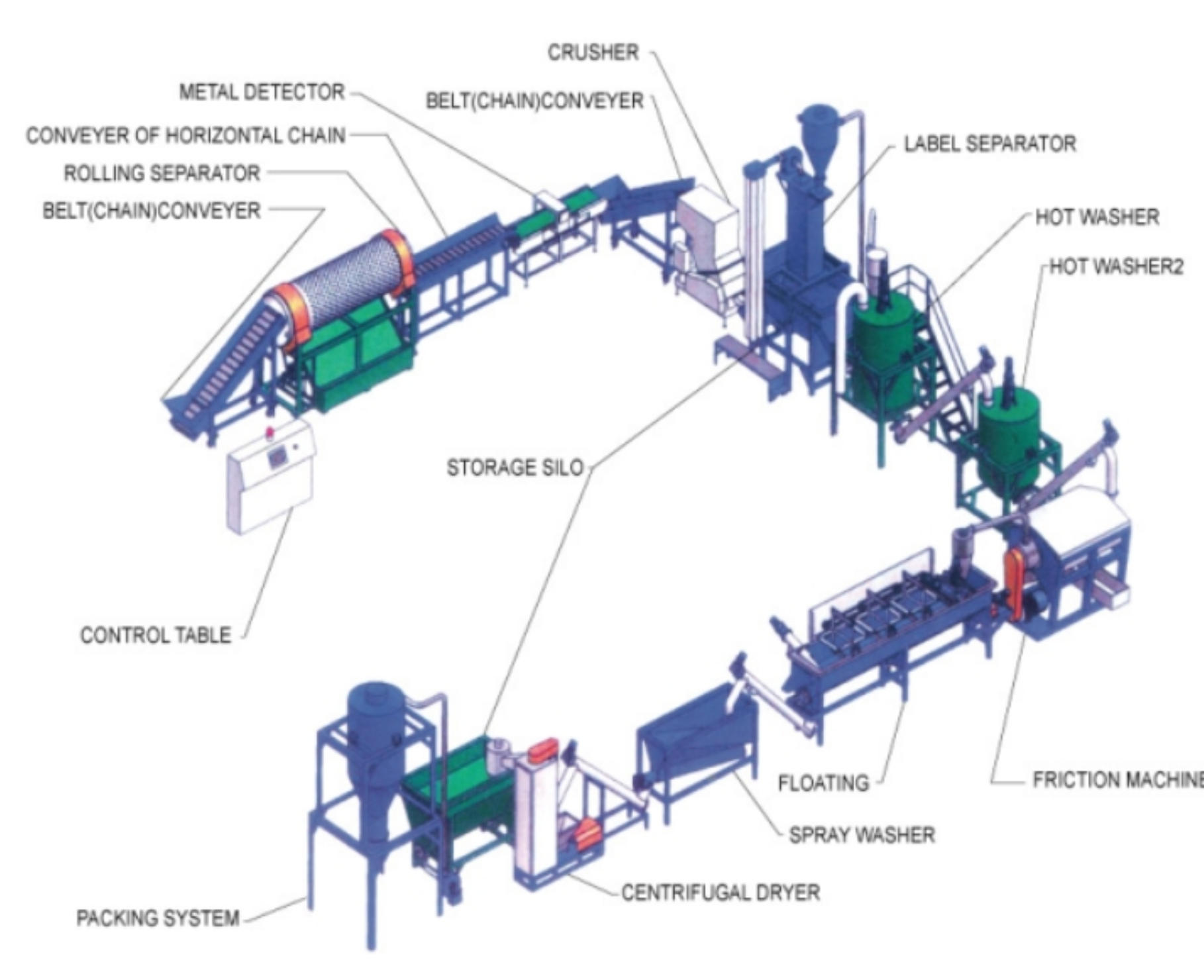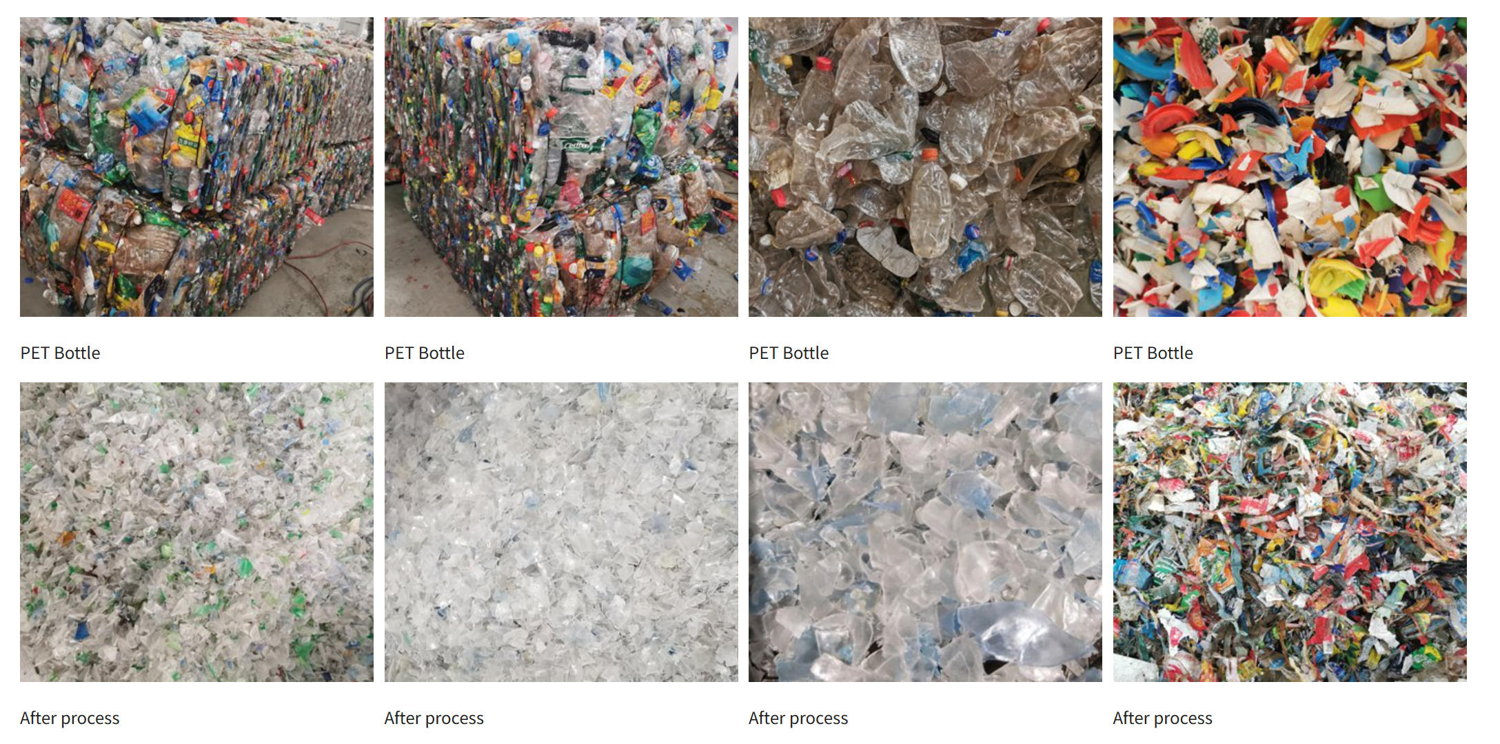We also can design different models of capacity PET bottle recycling line based on quality of flakes and next usage of requirements. The PET bottle washing recycling line can be installed "I", "L", and "U" shapes according to your workshop.